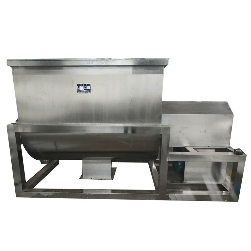 El mezclador de la cinta consiste en el buque de la forma horizontal de U, el sistema de impulsión y el mezclador de mezcla de la cinta. El elemento de mezcla se combina con el mezclador helicoidal doble interno y externo de la cinta. La cinta externa se traslada los materiales a la dirección de centro y la cinta interna mueve los materiales en la dirección de la oposición para formar radialmente y lateralmente movimiento. Finalmente, el material será descargado en la válvula de escape de centro. La licuadora de la cinta es un mezclador eficiente y versátil para mezclarse de los polvos secos de los gránulos homogéneo. Los diversos materiales se pueden mezclar en mezclador de la cinta con una manera apacible, especialmente en la mezcla del material de la comida. Además, el interruptor de alta velocidad está también disponible romper algunos terrones durante proceso de mezcla. La cubierta del cilindro se puede hacer en arco o completamente abierto. El arco puede llevar la presión. El tipo completamente abierto es conveniente limpiar el interior del equipo. Las ventajas de esta máquina son gama ancha del uso, alta uniformidad de mezcla, tiempo de mezcla corto y coeficiente cargado grande.