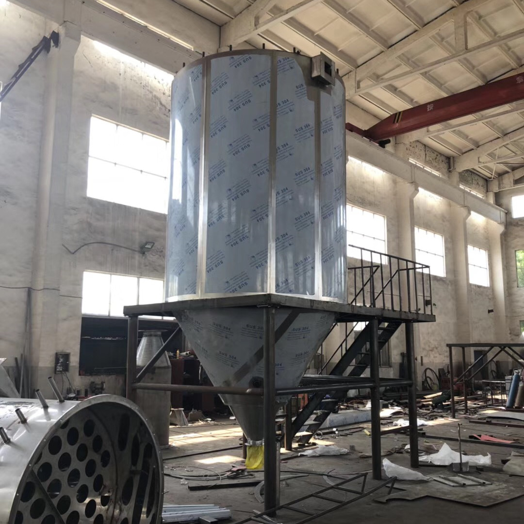 El aire se filtra y se calienta en el top del distribuidor del aire de secador, aire caliente en el espiral uniformemente en la cámara de sequía. El líquido material se rocía en una gotita líquida finalmente atomizada a través del nebulizador centrífugo de alta velocidad en la cima del cuerpo de la torre, y se puede entrar en contacto con con el aire caliente en un mismo breve periodo de tiempo y se puede secar en productos finales. El producto final se descarga continuamente de la parte inferior de la probeta de desecar gases y del ciclón, y el gas de escape es drenado por la fan del proyecto.