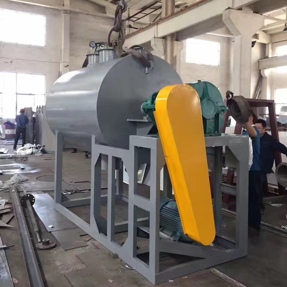 El material que se secará se añade de la parte superior de la parte superior de la cubierta. Bajo revolvimiento de los dientes que giran continuamente, el material se mueve axialmente hacia adelante y hacia atrás, y la superficie en contacto con la pared interna de la cubierta es puesta al día continuamente, y calentada indirectamente por el aceite del vapor o de la transferencia de calor. Revolviendo uniformemente, pulverizando la barra de pulverización, vaporizando el agua en el material, y bajo acción del sistema del vacío, la humedad interna y la humedad superficial del material secado se descargan más ventajoso, y el agua vaporizada se descarga del mercado de la bomba de vacío.