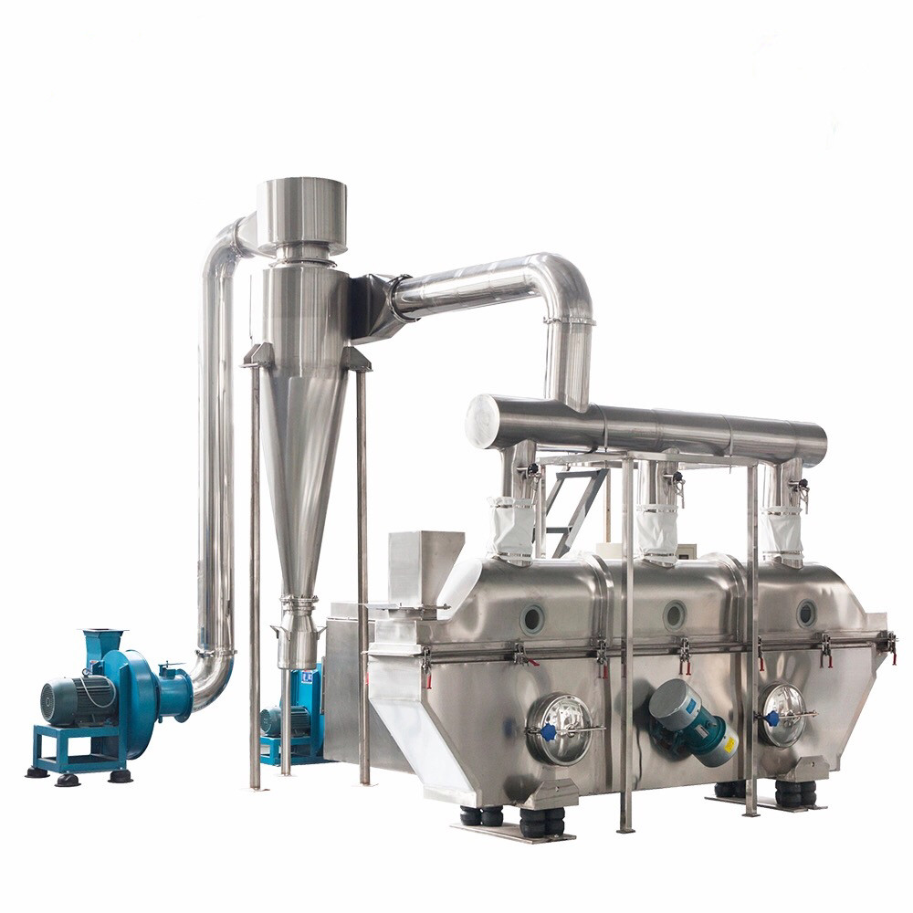 El material entra la tolva y se mueve adelante continuamente a lo largo de la línea del transportador bajo vibración. Los caudales caloríficos para arriba a través de lecho fluidizado, traen lejos la humedad en el material en el material. Descargas materiales entonces secadas.